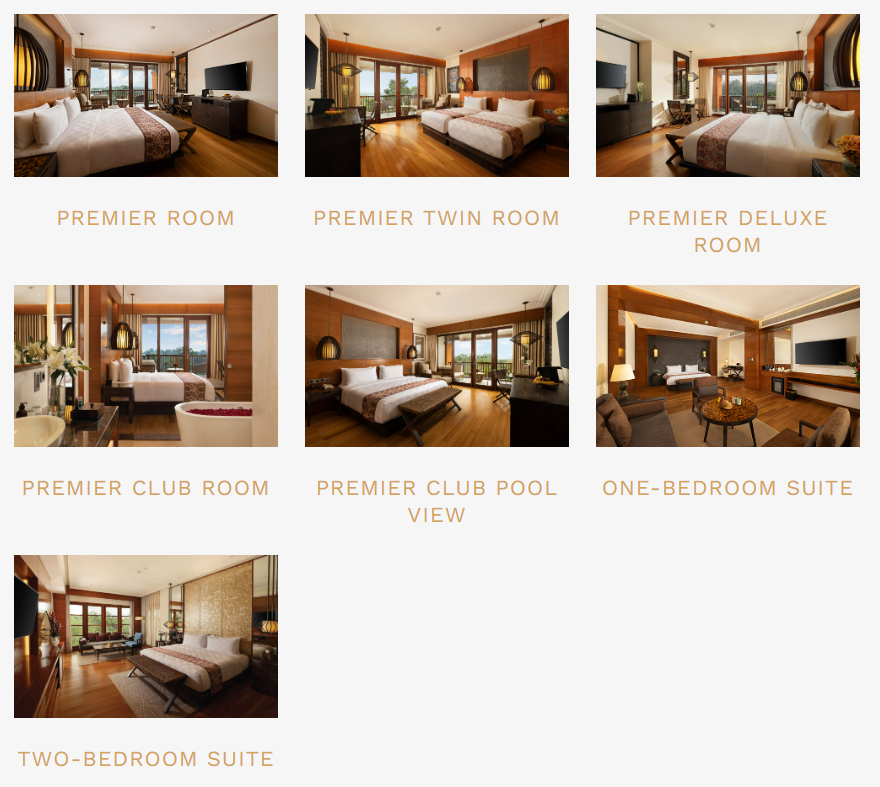 룸타입은 7가지로 나뉘어져 있습니다. 프리미어룸과 프리미어 디럭스 룸은 방 구조와 넓이의 차이가 약간 있습니다. CLUB룸의 경우에는 클럽 액세스와 풀뷰가 가능한 룸이 있습니다. 스위트는 가장 넓은 좋은 룸 구성이라고 보시면 될 것 같습니다.