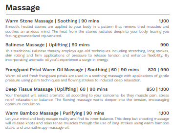 금액대를 살펴보니 10만원 정도를 생각하시면 60분~90분 정도의 원하는 마사지 코스를 경험해 보실 수 있을 것 같습니다.
