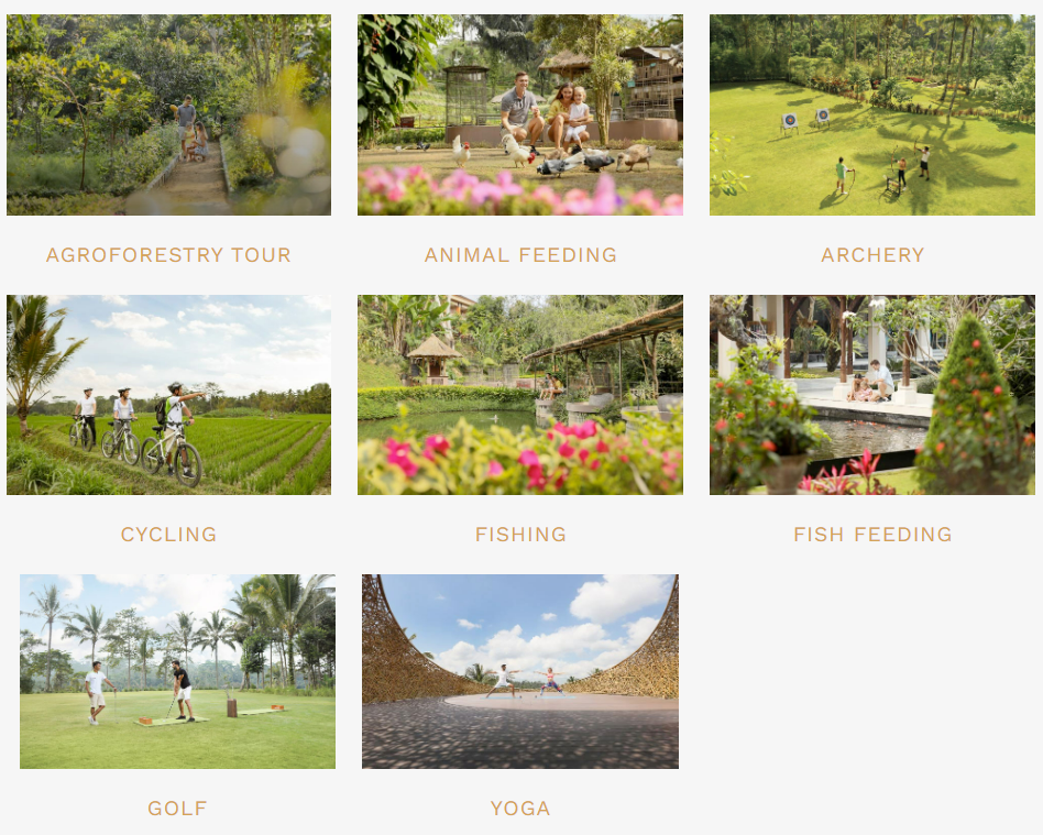 산책 투어, 동물들 먹이주기, 활쏘기, 싸이클링, 낚시, 물고기 먹이주기, 골프, 요가 등 정말 다양한 액티비티들 참여가 가능합니다. 그리고 이 모든 액티비티가 무료입니다!