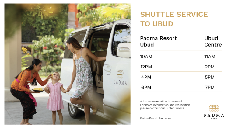 파드마 리조트는 우붓 시내와 차로 약 40분 이상 떨어져 있기 때문에, 그랩 비용이 꽤나 나오는 편입니다. 그래서 셔틀 이용을 많이 하시는 것 같았습니다. 셔틀 자리 예약도 꽤나 빡빡하니 체크인과 체크아웃 시에 여행 일정에 따라서 미리미리 예약하시는 것을 추천해 드립니다.