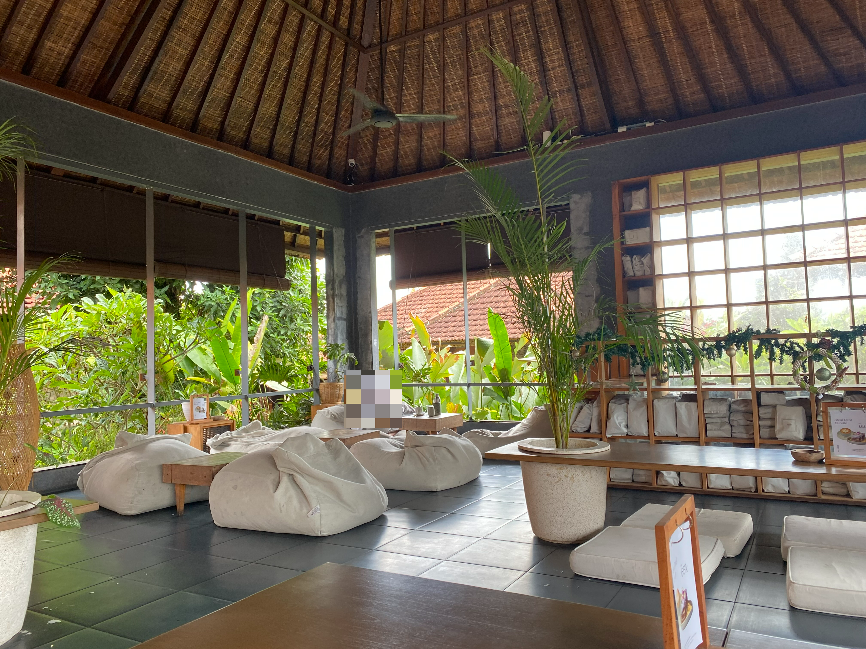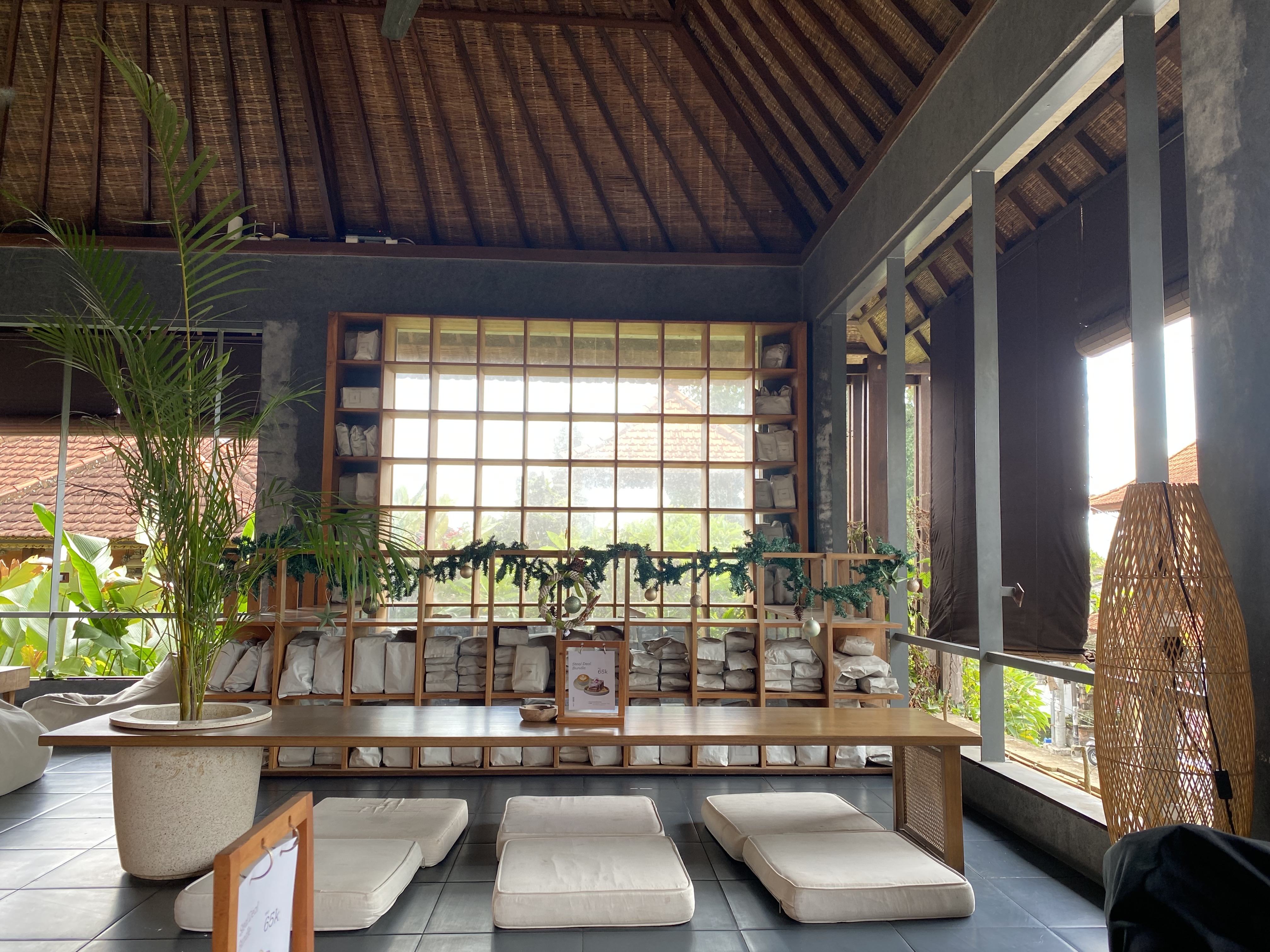 1층은 테이블이 있고, 2층은 좌식이 가능한 공간입니다. 발리는 기본적으로 덥고 습해서 2층이 더 시원할 것 같아서 2층으로 올라갔습니다. 예상대로 2층에는 바람도 솔솔 불고 깔끔하게 관리되어 있어서 좋았습니다. 특히 자리 곳곳에 콘센트가 많아서 필요한 랩탑이나 핸드폰을 충전할 수 있어서 좋았습니다.