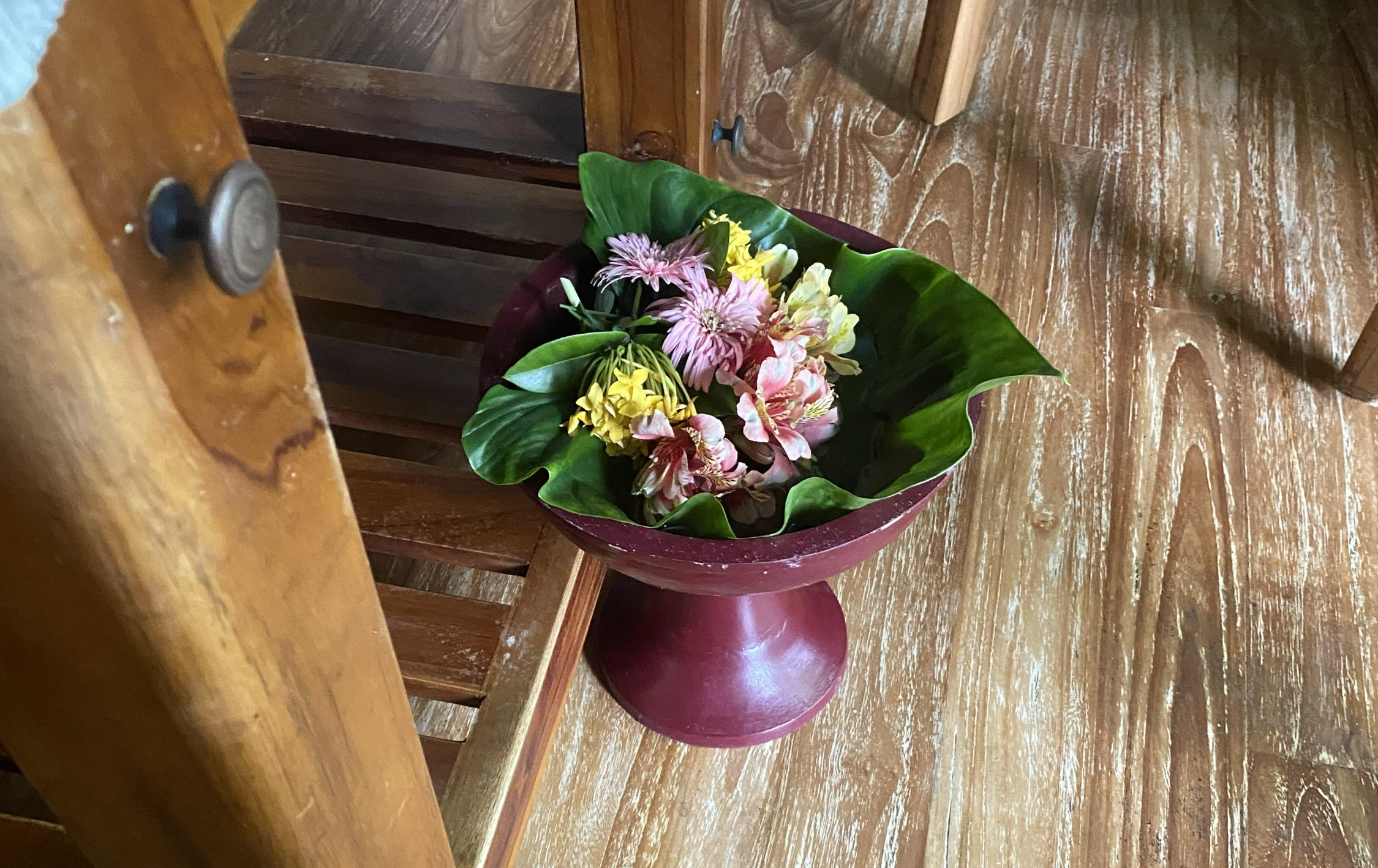 파드마 리조트 The Spa가 더 세심하게 고객을 관리해 준다고 느꼈던 부분은 바로 이 부분입니다. 위 사진에 얼굴을 넣어서 아래를 향하면 바로 이렇게 생화가 보이고, 생화의 향기로 인해서 한번 더 기분이 좋아졌습니다.