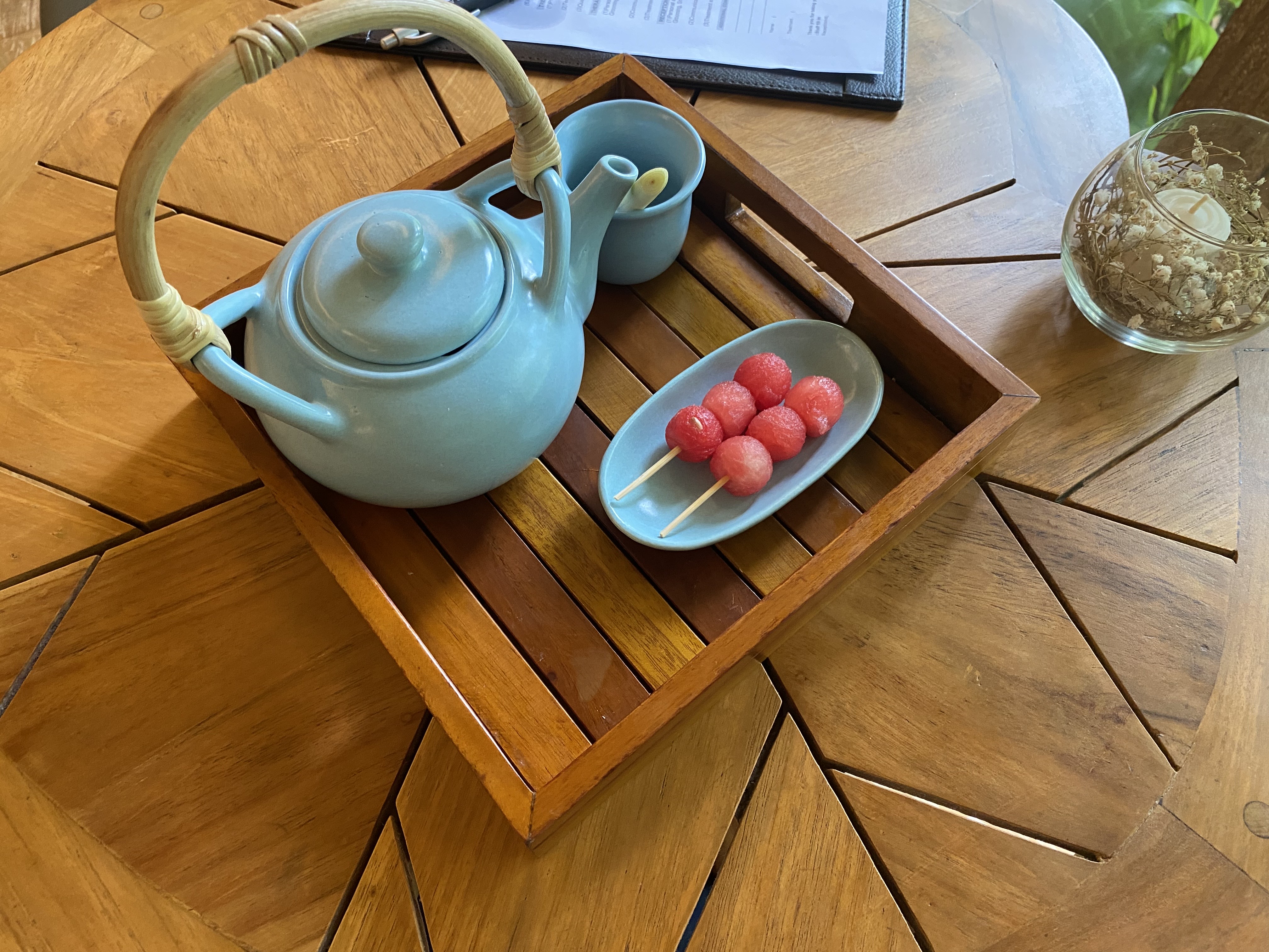 마지막까지 정갈한 생강차와 과일을 내주셨습니다. 개인적으로 마사지 이후에 티타임을 정말 좋아하는데 (노곤노곤한 상태에서 따뜻한 음료까지!) 티가 약간은 식어 있어서 아쉽긴 했습니다. 충분히 뜨겁지 않다면 다시 데워달라고 요청할 수도 있을 것 같은데, 뒤에 일정이 있어서 그냥 마셨습니다.