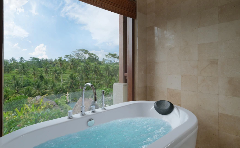 따뜻한 욕조에 몸을 담그면서 광활한 논뷰를 즐길수도 있습니다.